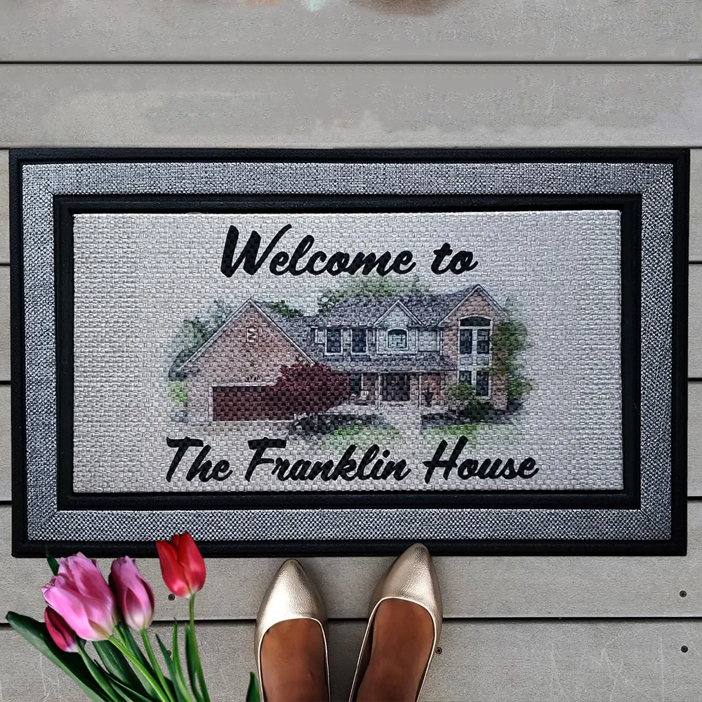 This XL welcome mat is perfect for covered porches and can also be used indoors.
